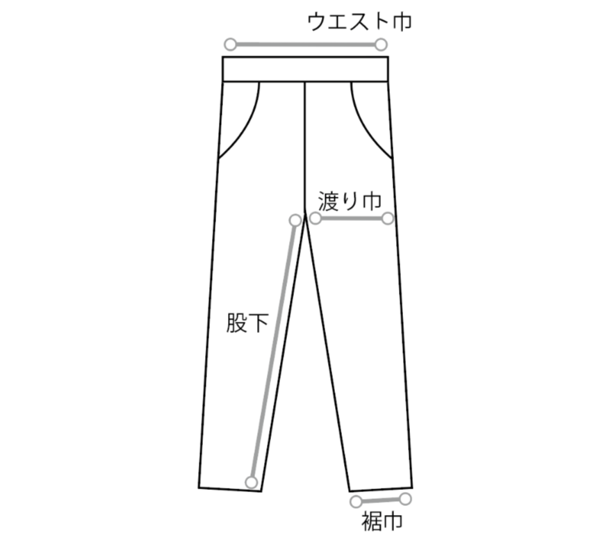ウエスト巾(cm) | 34 | 36 | 38 | 40 | 42 |